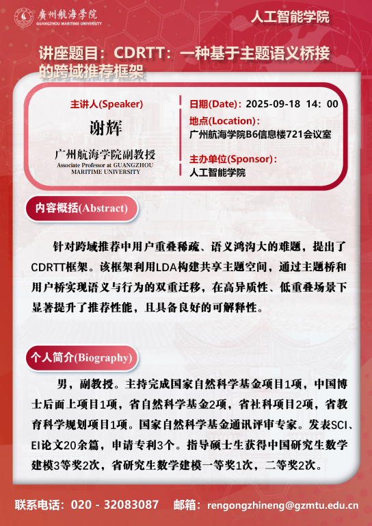 上一条:学术讲座预告:徐洁《基于韦伯定律的彼得森图局部人脸特征模式》 下一条:学术讲座预告:廖建尚 《双路径状态空间模型高光谱图像分类方法研究》