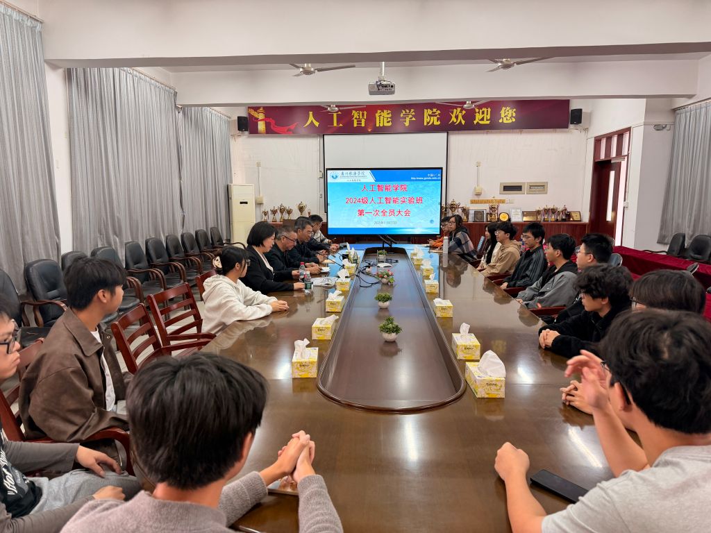 11月27日下午,谈球吧人工智能实验班首次全员会议在B6信息楼721会议室举行。公司党委书记容柏青、经理向丹、副经理钟君柳、人工智能专业负责人唐兵、人工智能系主任江倩殷、辅导员钟秀娟、人工智能系教师代表和实验班全体同学参加了会议。