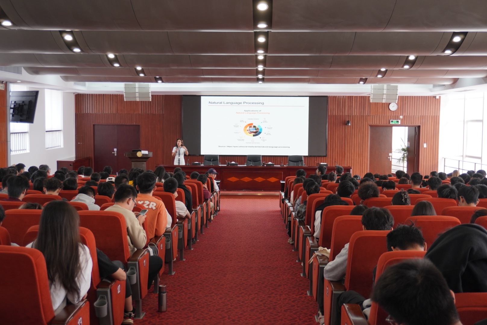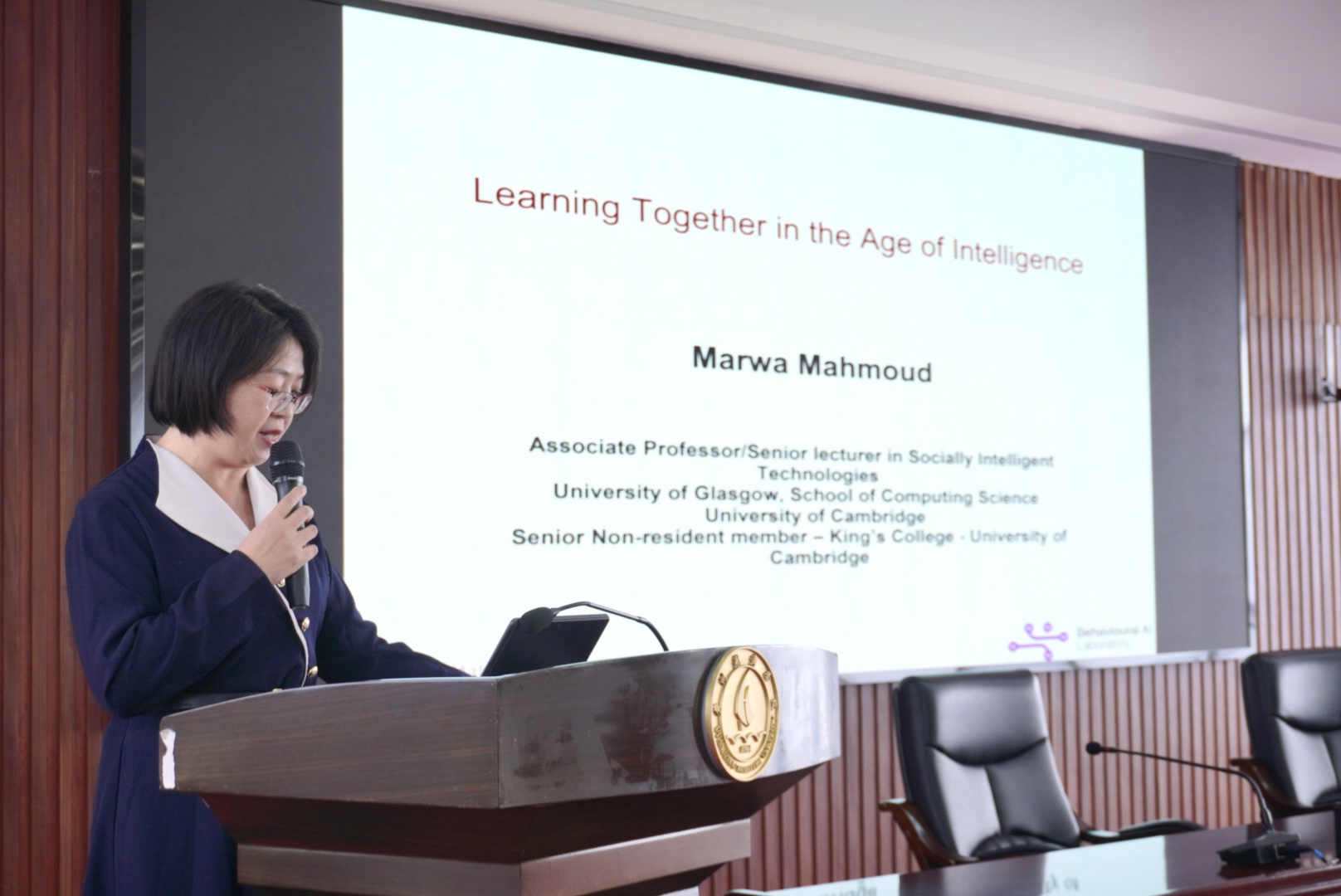2025年11月27日,公司在A1行政楼志海厅(A1-603)召开了专题学术讲座,讲座邀请了来自英国剑桥大学国王公司计算机科学与技术系的副教授 Marwa Mohammed Adel 博士做主题为 “Humans and AI – Learning Together in an Intelligent Age”(人与人工智能:在智能时代共同学习) 的专题报告。本次讲座由谈球吧和国际交流公司主办,会议由谈球吧向丹经理主持,谈球吧专任教师以及相关专业师生代表出席,同时吸引了国际交流公司、低空公司部分员工参加,座无虚席。